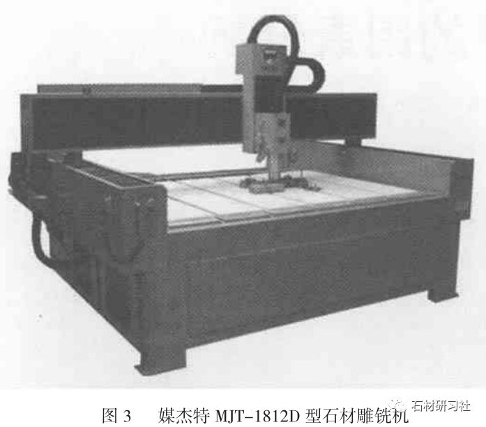 平面異型石材的加一般采用傳統的機械加工設備。設備通常配備-一個工作平臺供安放和固定工件用,刀具可沿x軸、Y軸、Z軸三個方向運動,配以圓盤銑刀或雕銑刀頭,可完成花線切割和文字雕刻。