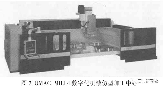 圖2為意大利0MAG公 司MLL4型3到6軸的數字化機械仿型加工中心, 這套加工中心集鋸、雕刻、打磨、轉銑于一體。